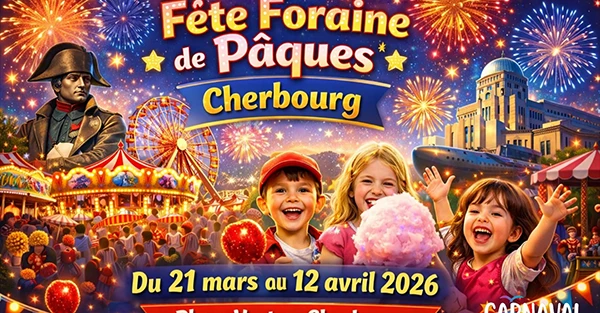 Plus grande fête foraine du département de La Manche avec cette année entre 60 et 70 manèges, attractions et autres stands forains, la Fête Foraine de Pâques de Cherbourg revient pendant plus de 3 semaines (dont 4 week-ends). Un événement à ne pas manquer !